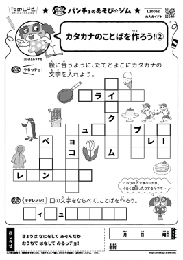 カタカナの言葉を使った簡単なクロスワードパズルです。挿絵をヒントにしてマスに答えを入れ、パズルを完成させましょう。最後に太枠の文字を並べ替えると、冬にぴったりの…