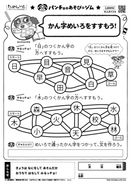 漢字の中に「日」や「木」の形がある方へ進む漢字迷路です。それぞれの漢字の形をよく見て正しい方へ進み、ゴールまでたどり着けるかな? 漢字が似た形の組み合わせででき…